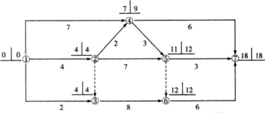 114、某工程双代号网络计划中各个节点的最早时间和最迟时间如下图所示,图中表明()