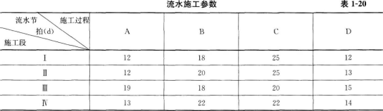 事件1:施工单位将施工作业划分为A、B、C、D四个施工过程,分别由指定的专业班组进行施工,每天一班工作制,组织无节奏流水施工,流水施工参数见表1—20。