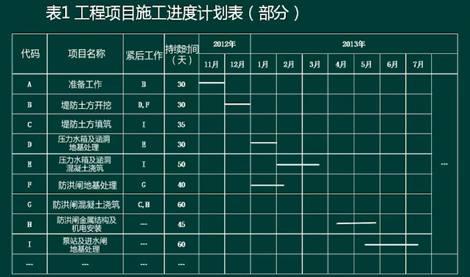事件1:根据施工方案及安全度讯要求,承包人编制了进度计划,并获得监理人批准。其部分进度计划见表1(不考虑前后工作的搭接,每月按30天计)。