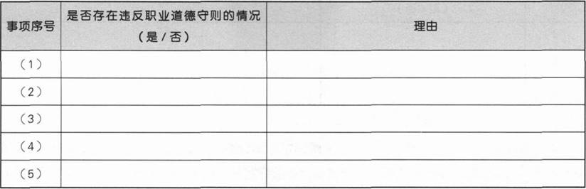 针对上述第(1)至(5)项,逐项指出是否存在违反中国注册会计师职业道德守则的情况,并简要说明理由。将答案直接填入答题区相应的表格内。