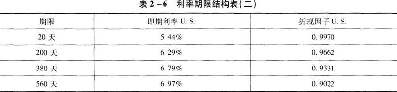 82、160天后,标普500指数为1204.10点,新的利率期限结构如表2—6所示。
