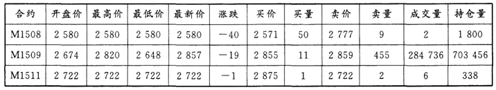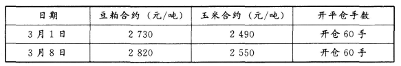 124、假设某期货交易所相同月份的豆粕期货和玉米期货的合理价差为280元/吨,套利者认为当前价差过小,买入豆粕期货的同时卖出玉米期货进行套利交易,交易情况如下表所示,则该套利交易者的盈亏状况为()。(豆粕期货、玉米期货合约交易单位为10吨/手,不计手续费等费用)