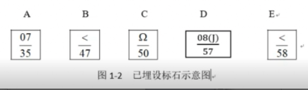 工程初验前,建设单位要求对光缆路由进行调整,需增设标石如下:标石B后增加1个监测标石B1,标石C后增加1个直线标石C1,标石E后增加1个接头标石E1,已埋设的标石标识见图1-2。
