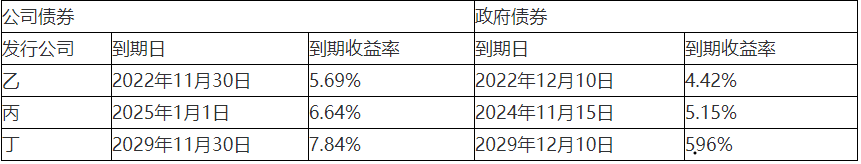 目前上市交易的AA级公司债券及与之到期日相近的政府债券信息如下:
