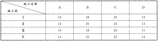 事件一:施工单位将施工作业划分为A、B、C、D四个施工过程,分别由指定的专业班组进行施工,每天一班工作制,组织无节奏流水施工,流水施工参数见下表(单位:d):