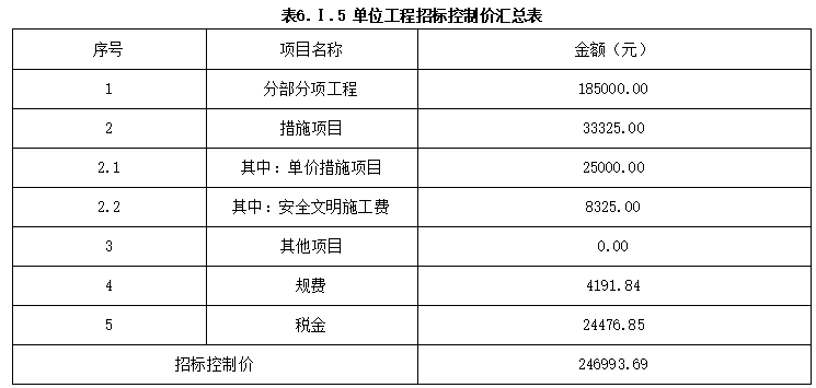 分部分项工程和单价措施项目清单与计价表见表6.3.4
