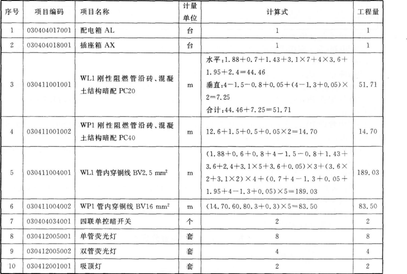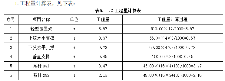 表6.3.3工程量计算表