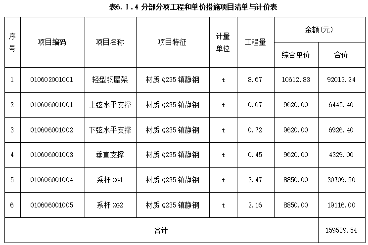 3.根据问题1和问题2的计算结果,及答题卡表6.1.3中给定的信息,按《建设工程工程量清单计价规范》(GB50500-2013)的要求,在答题卡表中6.1.3“分部分项工程和单价措施项目清单与计价表”中,编制该机修车间钢屋架系统分部分项工程和单价措施项目清单与计价表。