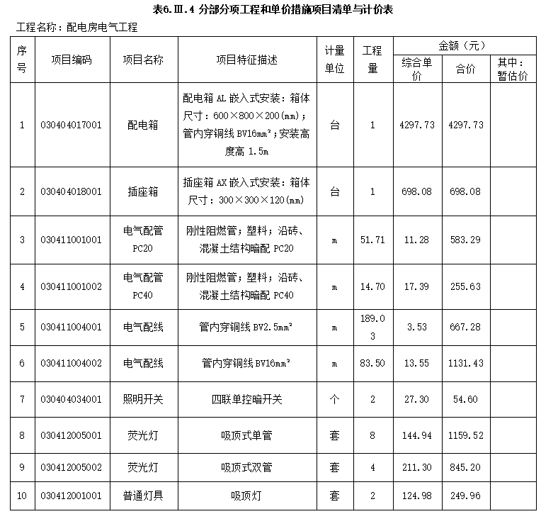 工程名称:配电房标段:电气工程