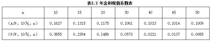 3.三个方案设计使用寿命均按50年计,基准折现率为10%,A方案年运行和维修费用为78万元,每10年大修一次,费用为900万元,已知B、C方案年度寿命周期经济成本分别为664.222万元和695.400万元,其他有关数据资料见表2.2“年金和现值系数表”。列式计算A方案的年度寿命周期经济成本,并运用最小年费用法选择最佳设计方案。