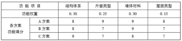 各方案功能权重及得分,见表2.1。