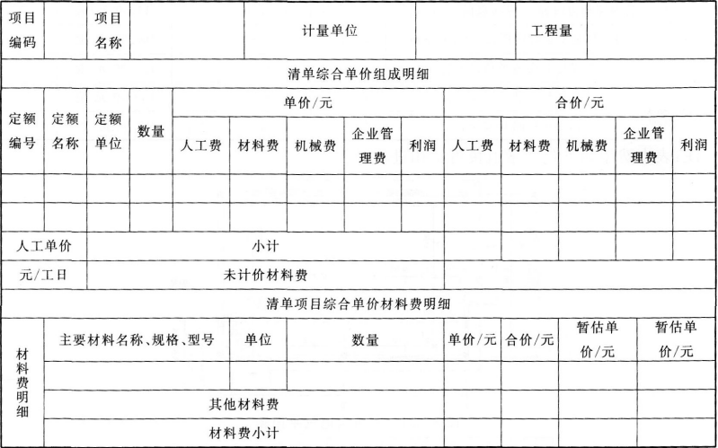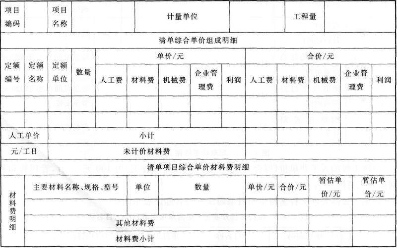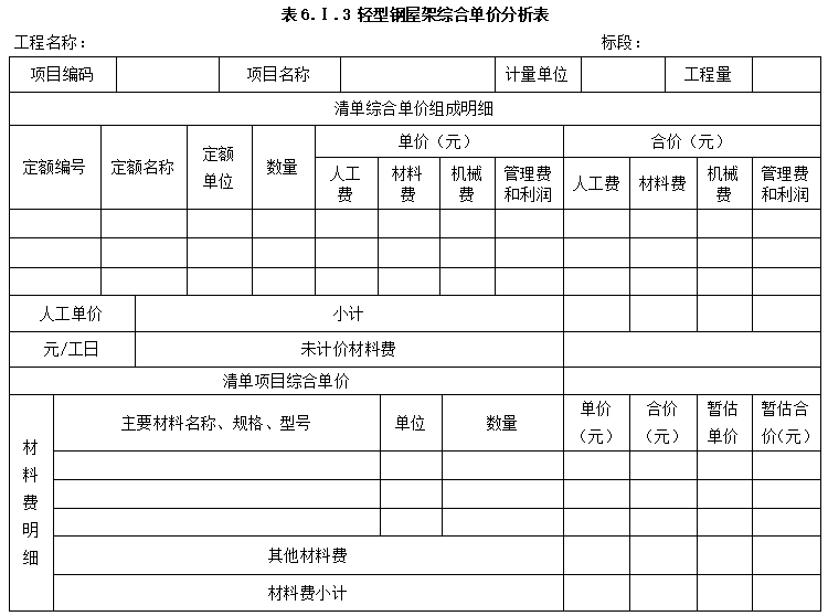 3.综合单价分析表,见下表:
