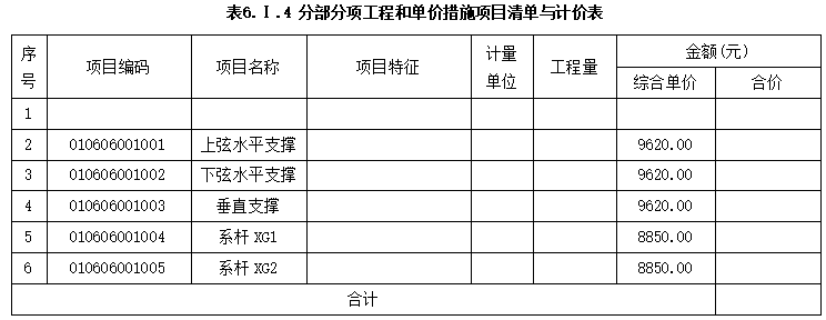 表6.3.4分部分项工程和单价措施项目清单与计价表