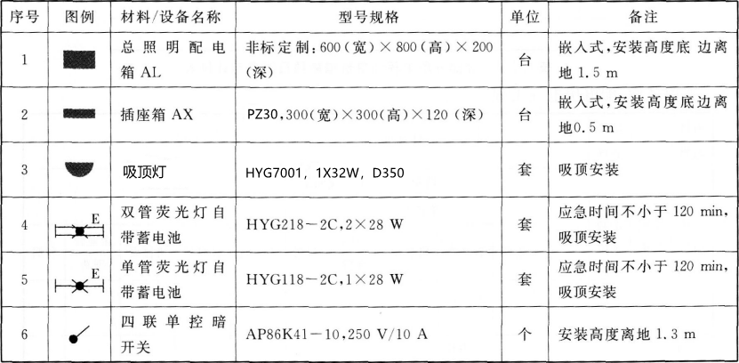 图6.3.2配电箱系统图、设备材料表