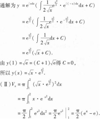 (Ⅱ)设平面区域D={(x,y)|1≤x≤2,0≤y≤y(x)},求D绕x轴旋转一周所得旋转体的体积。