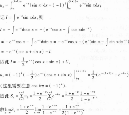 19、设n是正整数,记Sn为y=e-xsinx(0≤x≤nπ)与x轴所围图形的面积,求Sn,并求