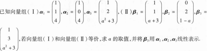 则当a=1或a≠1且a≠-1时,β1,β2,β3可由α1,α2,α3线性表示.