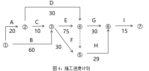 某石化总厂(甲方)与某安装公司(乙方)签订了某机电设备安装施工合同。该安装工程项目涉及的设备和材料均由甲方提供。甲乙双方合同规定,采用单价合同,每一分项工程的实际工程量增加或减少超过招标文件中工程量的10%以上时调整单价。工作B、C、E作业使用的主要施工机械一台(乙方自备),台班费用为400元/台班,其中台班折旧费为50元/台班,施工网络计划如下图所示(单位:天)。