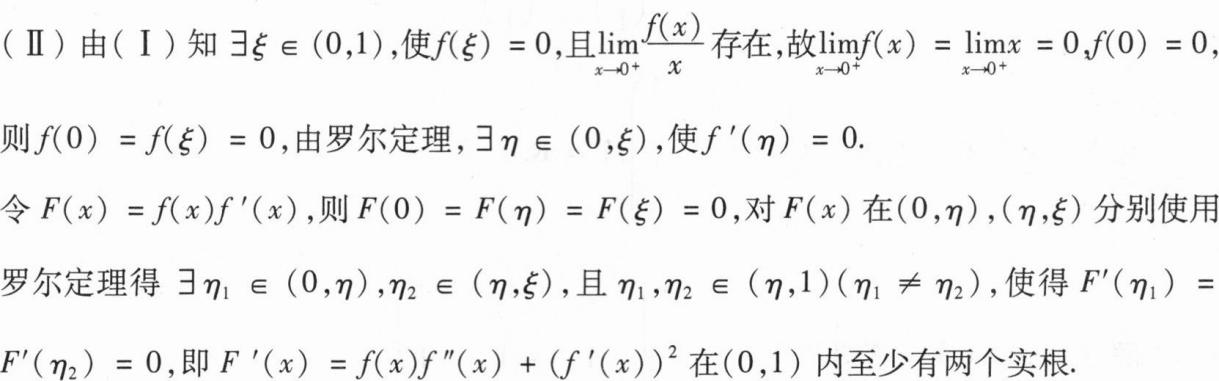 (Ⅱ)方程f(x)f”(x)+[f’(x)]2=0在区间(0,1)内至少存在两个不同的实根.
