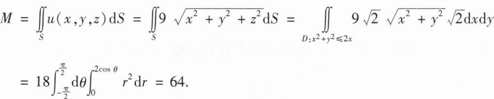 被柱面z2=2x割下的有限部分,其上任一点的密度为u(x,y,z)=9