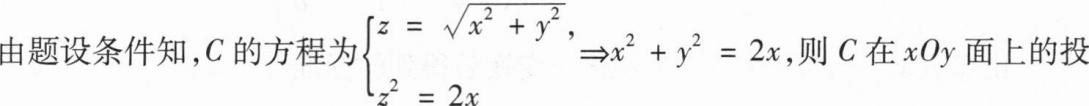 ,记圆锥面与柱面的交线为C.(I)求C在xOy面上的投影曲线的方程;