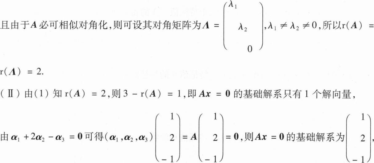 解:(I)由α3=α1+2α2可得α1+2α2-α3=0,即α1,α2,α3线性相关,因此,|A|=0,