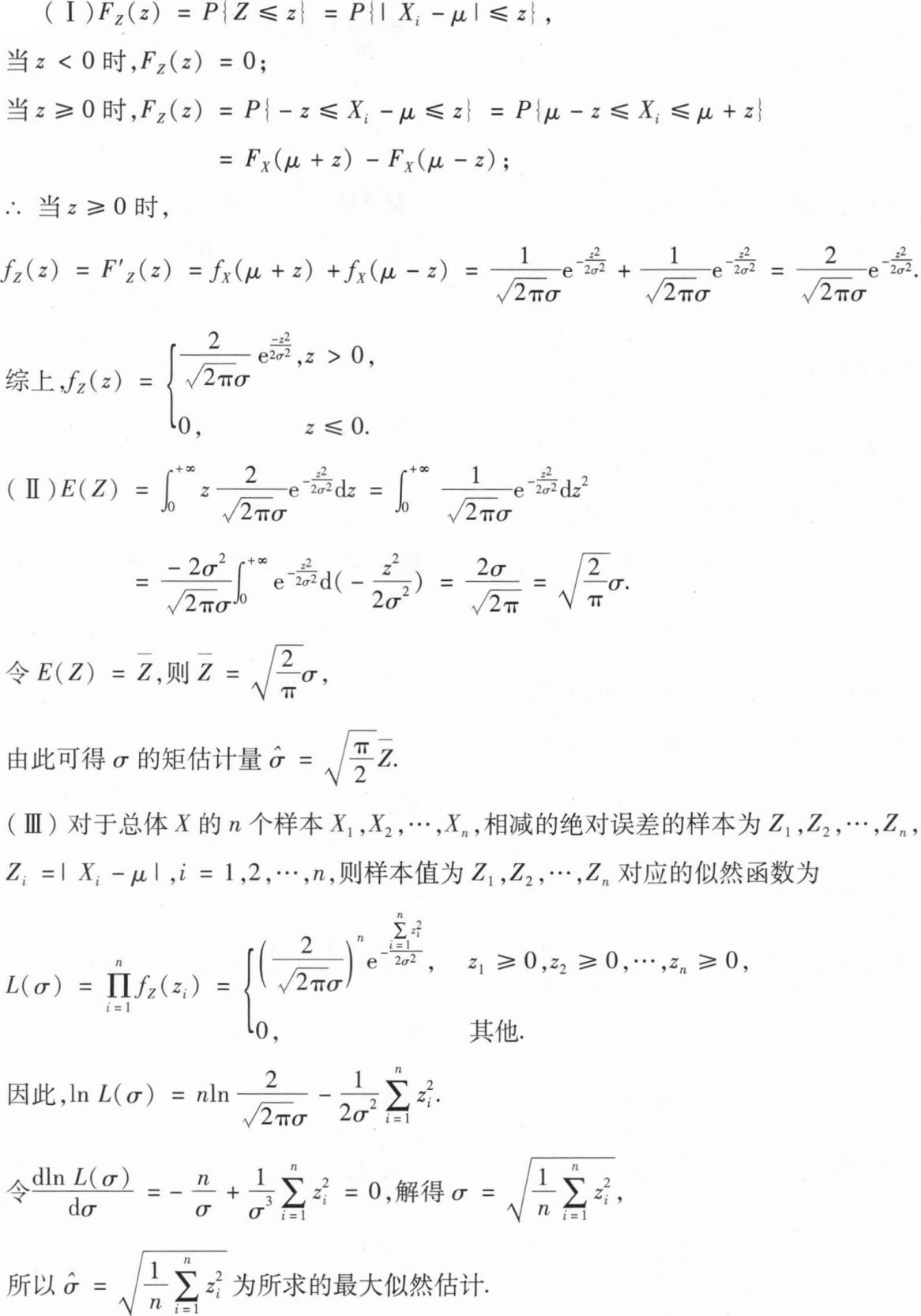 (Ⅱ)利用一阶矩求σ的矩估计量;