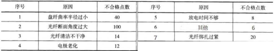 测试中发现部分光缆对地绝缘不合格,且光纤接续衰减过大,不合格接续点的统计数据如下: