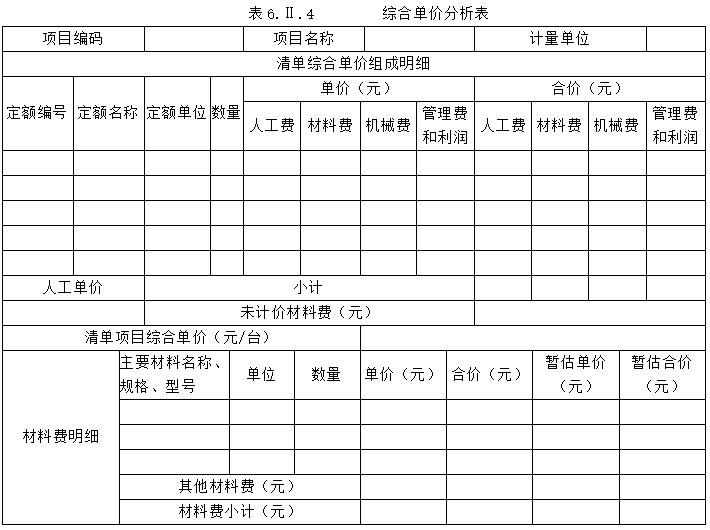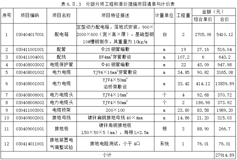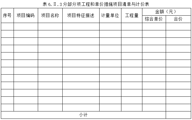 6.Ⅱ.1“分部分项工程和单价措施项目与计价表”
