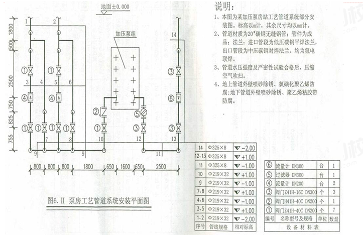 1.图6.Ⅱ为某加压泵房工艺管道系统安装的截取图。