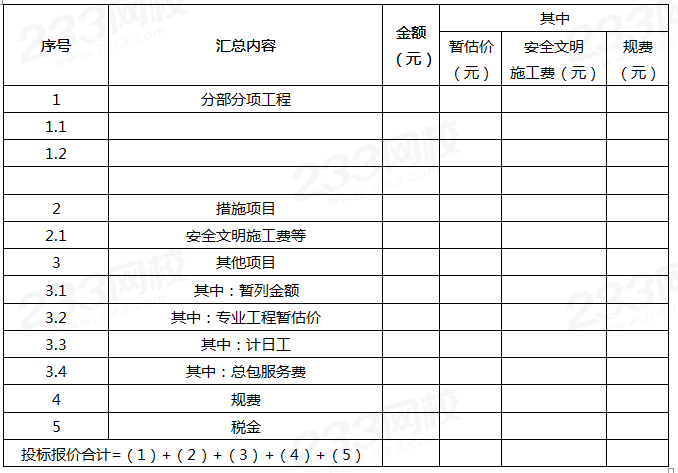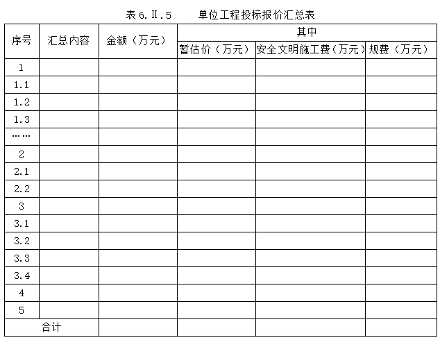 问题4:表6.Ⅱ.3单位工程投标报价汇总表