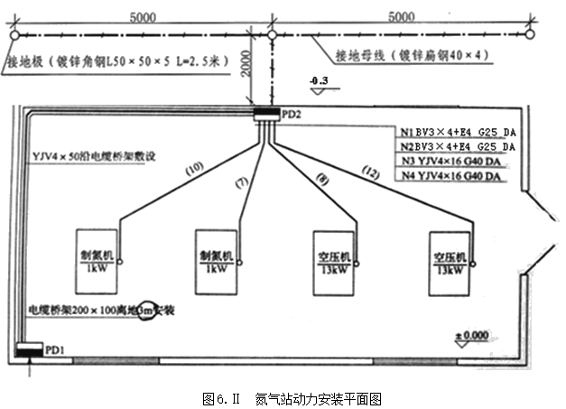 1.某氮气站动力安装工程如图6.Ⅱ所示。