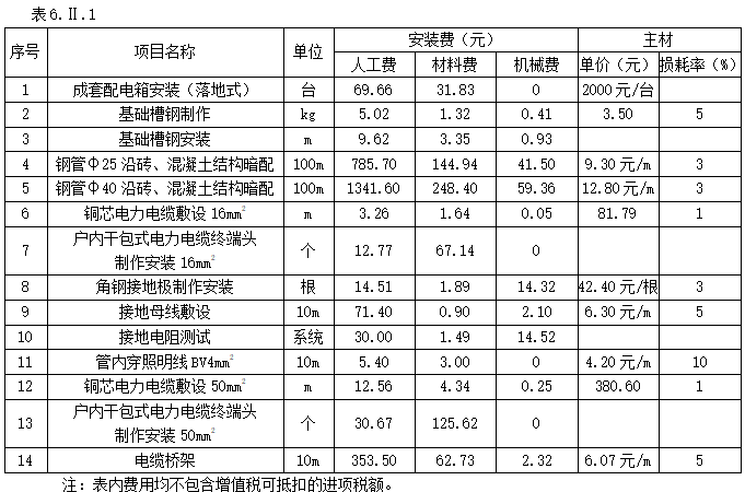 9.表6.Ⅱ.1中数据为计算该动力安装工程的相关费用。