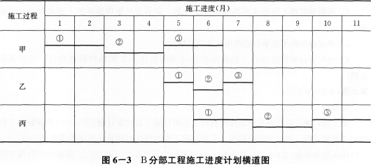 (4)B分部工程调整后的流水施工进度计划横道图如下: