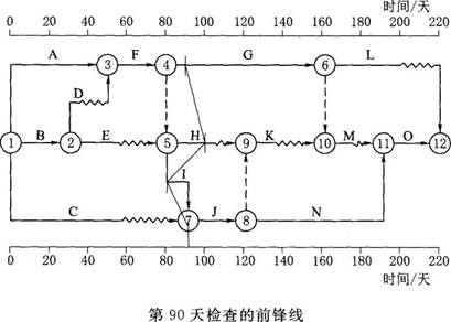 3.事件2中,请画出第90天检查的前锋线,并分别指出第90天下班时各工作时间进度对总工期的影响,并说明理由。