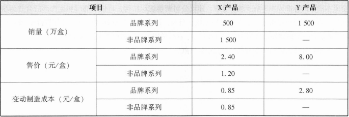 乙部门生产X、Y两种产品,其中:X产品有品牌和非品牌系列,Y产品只有品牌系列。