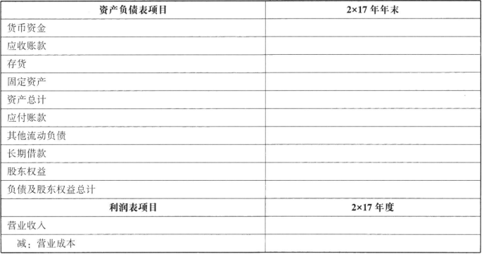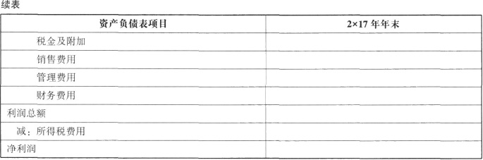 预测公司2×17年年末资产负债表和2×17年度利润表(结果填入下方表格中,不用列出计算过程[10])。