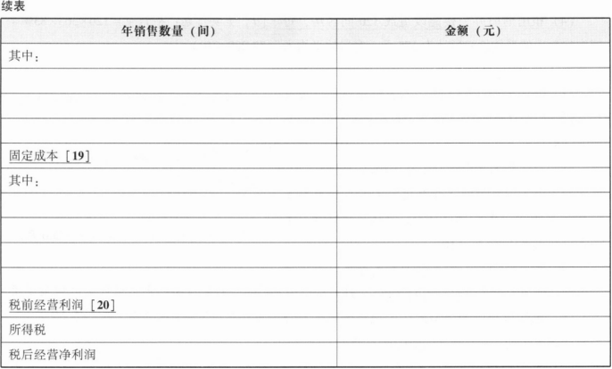 (5)经济型酒店的人工成本为固定成本。根据拟开设酒店的规模测算,预计每年人工成本支出105万元。