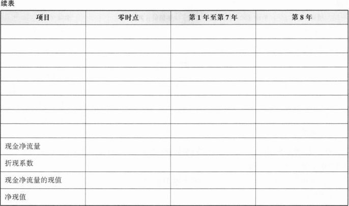 (3)计算经济型酒店项目的初始(零时点)现金流量、每年的现金净流量及项目的净现值(计算过程和结果填入下方给定的表格中),判断项目是否可行并说明原因。