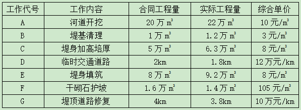 某河道整治工程包括河道开挖、堤防加固、修筑新堤、修复堤顶道路等工作。施工合同约定: