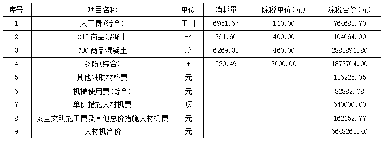 (6)管理费和利润按人材机费用之和的20%计取,规费按人材机费、管理费、利润之和的6%计取,增值税税率为9%。