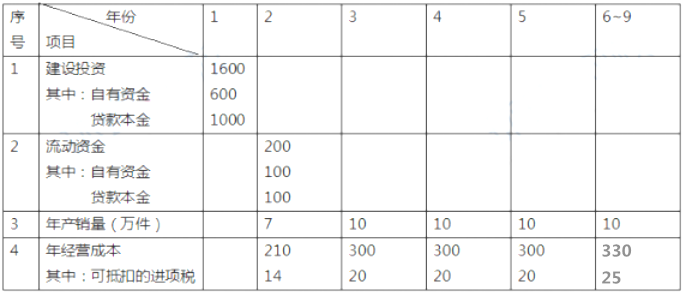 4.项目正常年份的设计产能为10万件,运营期第1年的产能为正常年份产的70%。目前市场同类产品的不含税销售价格约为65~75元/件。