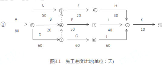 事件1:施工前施工单位编制了工程施工进度计划(如图3.1所示和相应的设备使用计划,项目监理机构对其审核时得知,该工程的B、E、J工作均需使用一台特种设备吊装施工,施工承包合同约定该台特种设备由建设单位租赁,供施工单位无偿使用。在设备使用计划中,施工单位要求建设单位必须将该台特种设备在第80日末租赁进场,第260日末组织退场。
