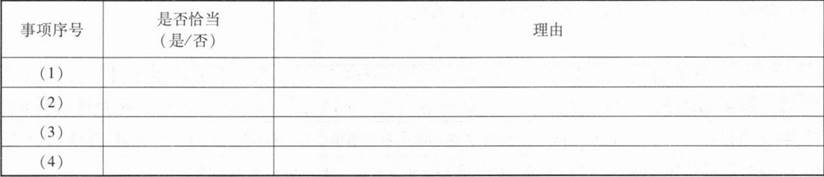 (3)针对资料四第(1)至(4)项,假定不考虑其他条件,逐项指出A注册会计师的做法是否恰当:如不恰当,简要说明理由。将答案直接填入答题区的相应表格内。