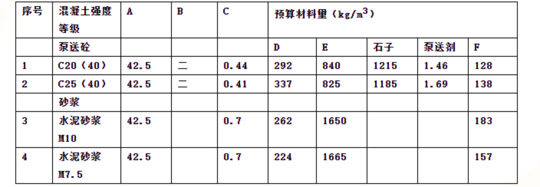 事件二:投标人甲编制的投标文件中,河道护坡现浇混凝土配合比材料用量(部分)见下表。