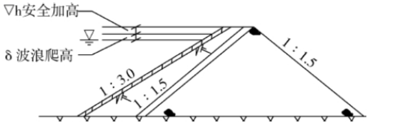 事件二:上游围堰采用均质土围堰,围堰断面示意图如下所示,施工单位分别采取瑞典圆弧法(K1)和简化毕肖普法(K2)计算围堰边坡稳定安全系数,K1、K2计算结果分别为1.03和1.08。施工单位组织编制了围堰工程专项施工方案,专项施工方案内容包括工程概况等。