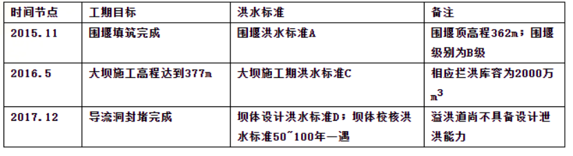 事件一:根据合同工期要求,该工程施工导流部分节点工期目标及有关洪水标准如下表所示。