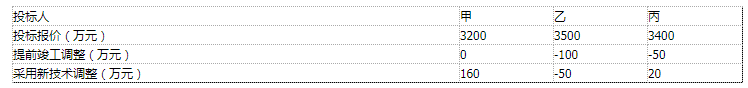 19、某采用经评审的最低投标价法评标的项目,其评标价比较如下: