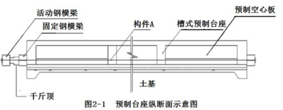 1.根据图2-1预制台座的结构型式,指出该空心板的预应力体系属于哪种型式?写出构件A的名称。