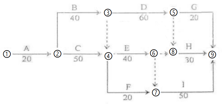 2.对始终网络进度计划进行调整:工作CEI和BDH应分别进行顺序施工:节点⑤到⑧增加虚工作;为了保证总工期、关键线路、关键工作不变:增加节点⑥到⑧的虚工作。